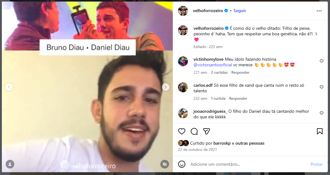 Reconhecimento de Nicho: Engajamento orgânico de grandes páginas de forró e música que ficaram surpresos com o filho doo Daniel Diau.